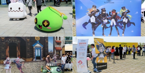 클로저스도 캐릭터의 일러스트를 크게 담아 놓은 조형물이 있었고, 유저들에게는 스티커와 게임 아이템을 증정했습니다. 던파&사이퍼즈 부스에서는 기념품을 증정하기 위해 설문조사를 진행했습니다. 던파 느낌으로 꾸며진 부스에서는 키리의 강화기가 실물로(?) 등장했고, 옆에서는 가위바위보 등의 이벤트가 진행됐습니다.