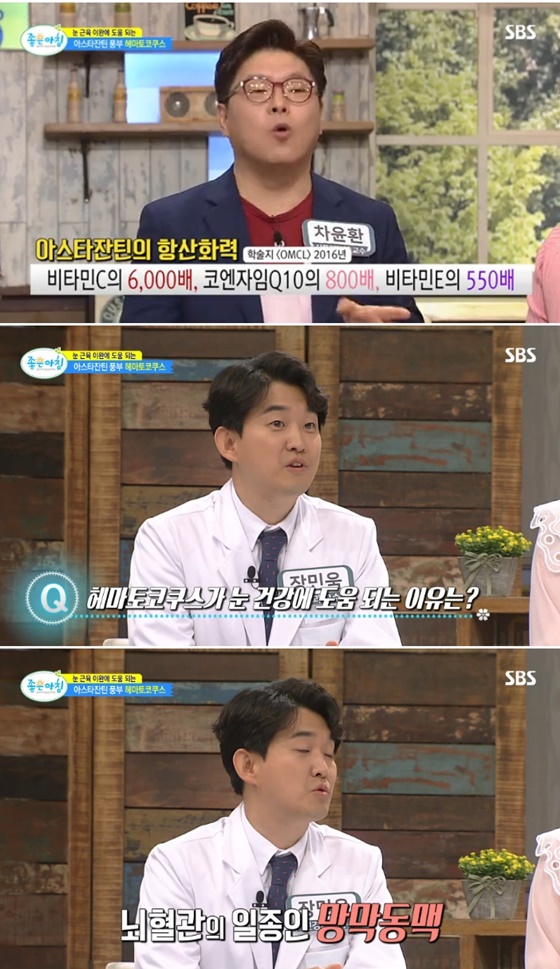 이어 차윤환 교수는 "아스타잔틴이 활성 산소를 잡아 없애주고 이런 것을 항산화 능력이라고 한다. 아스타잔틴은 비타민C의 6천 배를 갖고 있는 강력한 항산화력을 갖고 있는 항산화제다"라고 덧붙였다.