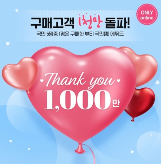 에뛰드하우스는 구매고객 1000만 돌파를 기념해 전품목 50% 할인행사를 실시한다고 27일 밝혔다.