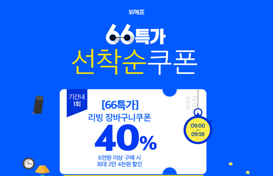 한편 쿠폰은 '위메프 66특가 리빙 추천상품'에 한해 사용이 가능하며, 신규 주문만 사용이 가능하다.
