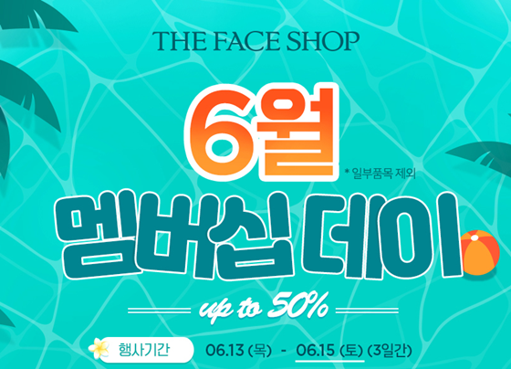 더페이스샵이 '6월 멤버십데이'를 실시한다.