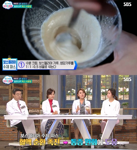 지난달 22일 SBS 시사/교양 프로그램 '좋은 아침'에는 보스웰리아의 효능이 설명되며. 보스웰리아 파스가 소개됐다.