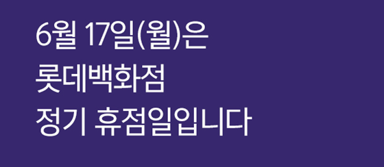 롯데백화점은 공지사항을 통해 '6월 17일은 롯데백화점 정기 휴점일입니다'라며 휴무를 알렸다.