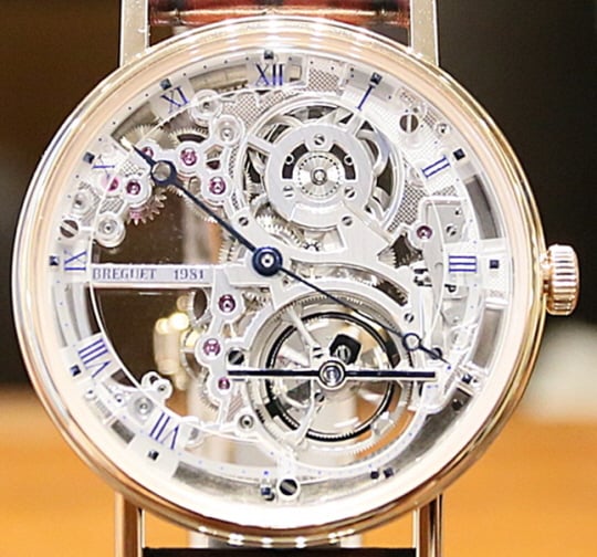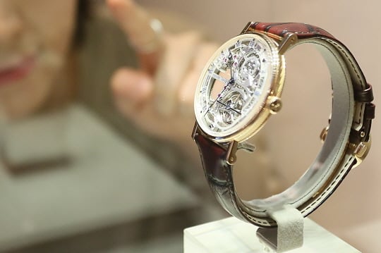 갤러리아명품관이 26일 스위스 하이엔드 워치 메이커 브레게(Breguet)의 '2019 노벨티인 클래식 뚜르비옹 엑스트라 플랫-스켈레트 5395'를 국내 최초로 선보였다.
