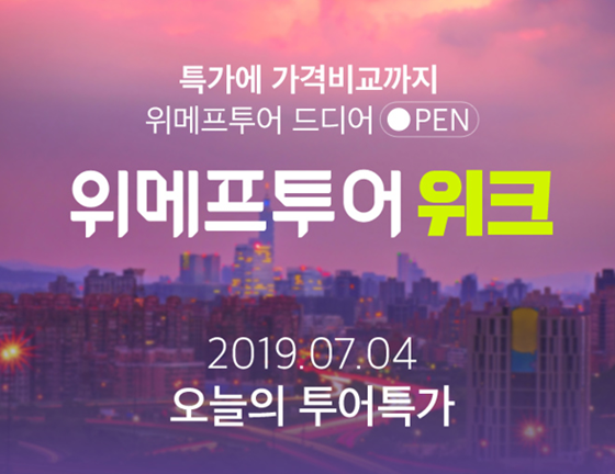 위메프는 4일 '위메프투어 위크'의 일환으로 '오늘의 투어 특가'를 공개했다. 이 이벤트는 선착순 해외여행 최대 50%를 할인해준다.