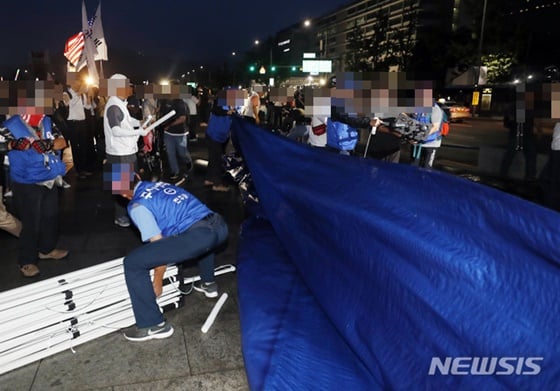 우리공화당이 불법 천막을 자진 철거했다./사진=뉴시스