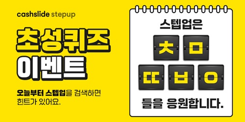 캐시슬라이드 스텝업은 20일 오전 11시부터 '오늘부터 스텝업' 초성 퀴즈 이벤트를 진행한다고 밝혔다.