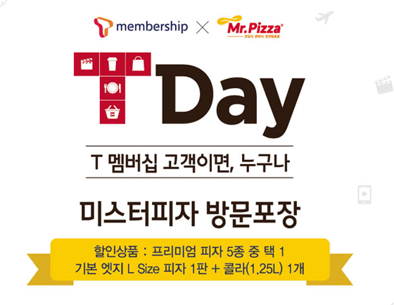 미스터피자는 T 멤버십 회원이면 누구나 참여 가능한 '미스터피자 방문포장' 이벤트를 실시한다.