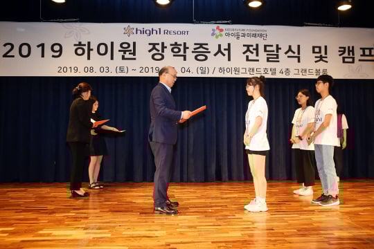 한편, 하이원리조트는 2008년부터 폐광지역 저소득층 학생들이 꿈과 비전을 실현할 수 있도록 장학금을 지원해 오고 있으며, 올해까지 4,700여명에게 약 106억 원의 장학금을 전달했다.