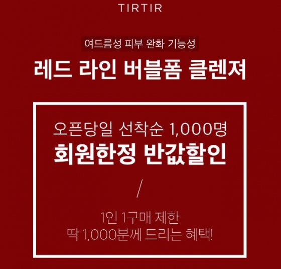 티르티르가 '레드 라인 버블폼 클렌져' 오픈을 기념해 반값할인 행사를 실시한다.