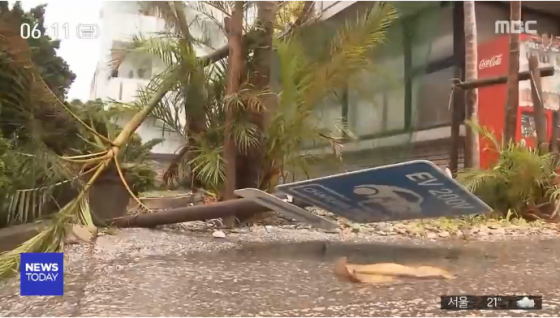 주차되어 있던 자동차가 뒤집혀 날아가고, 도로에는 가로수와 표지판이 뿌리 뽑혀 나뒹구는 피해가 속출했다.