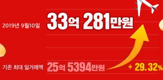 위메프투어는 지난 10일 일거래액 33억281만원을 기록, 역대 최대 기록을 세웠다고 18일 밝혔다. 이는 기존 일 최대 거래액 25억5394만원보다 29.32% 늘어난 수치다.