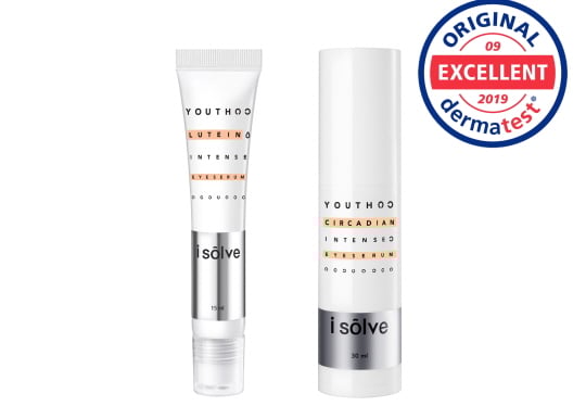 독일 더마테스트에서 엑설런트 등급을 획득한 아이솔브 제품은 △유스 루테인 인텐스 아이세럼 △유스 썰카디안 인텐스 아이세럼 등 2종으로 예민한 눈가를 걱정없이 관리할 수 있도록 보존제, 석유계 계면활성제, 인공색소 등 걱정되는 성분 20가지를 넣지 않은 점을 높게 평가받았다.