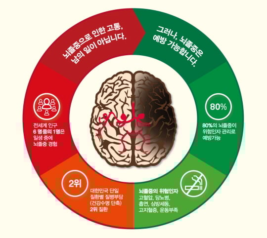 뇌졸중이란 뇌의 혈관이 막히거나 터져서 뇌기능이 저하되는 병으로, 혈관이 막히면 ‘뇌경색’, 혈관이 터지면 ‘뇌출혈’이라고 한다. 뇌졸중의 가장 큰 원인은 동맥경화로 인한 뇌경색으로 알려져 있다. 따라서 고혈압, 당뇨 등 만성질환이 있다면 철저한 건강관리가 매우 중요하다.