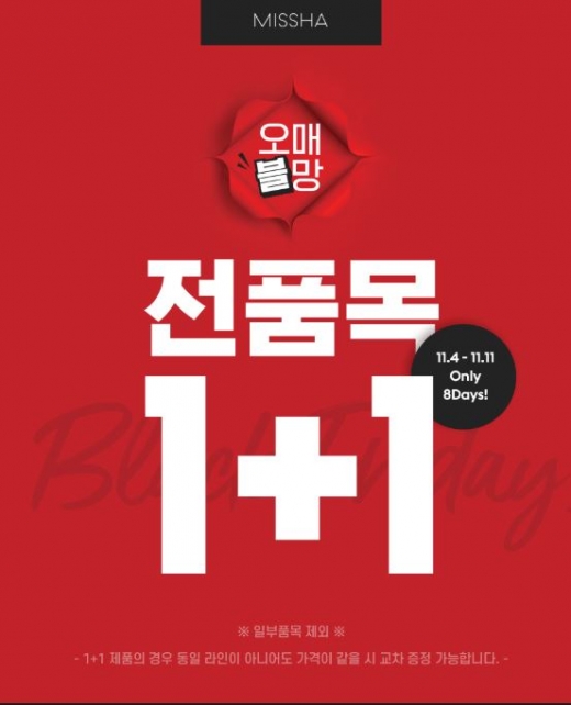 비즈/라이프라이프스타일미샤, 전품목 '1+1 이벤트'..5만원 이상 구매시 '에어팟' 증정발행 : 2019.11.04 ・ 11:26김혜림 기자/사진제공=미샤미샤가 블랙프라이데이 이벤트를 진행한다고 4일 밝혔다.미샤는 이날부터 오는 11일까지 1개 구매 시 하나를 추가 증정하는 '1+1 이벤트'를 진행한다.더불어 미샤는 누적 구매액 5만 원 이상 고객 가운데 총 40명에게 ▲다이슨 스타일러 에어랩▲애플 정품 에어팟을 증정한다.해당 이벤트 미샤 회원을 대상으로 진행되며 당첨자는 오는 20일 발표된다.<저작권자 © 스타뉴스, 무단전재 및 재배포 금지>DAUM미샤추천 기사김혜림 기자기자홈좋아요 비즈/라이프-라이프스타일의 인기 급상승 뉴스비즈/라이프-라이프스타일의 최신 뉴스