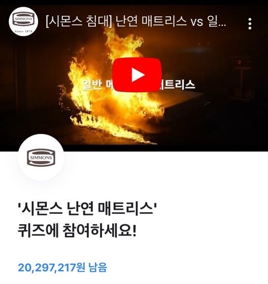 토스 행운 퀴즈로 '시몬스 난연 매트릭스' 관련 문제가 출제됐다.