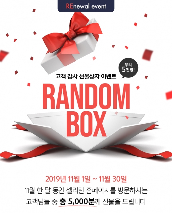셀리턴이 홈페이지를 재단장하면서 경품 이벤트 등 11월 한 달간 풍성한 혜택을 가득 담은 ‘RE 이벤트’를 연다.