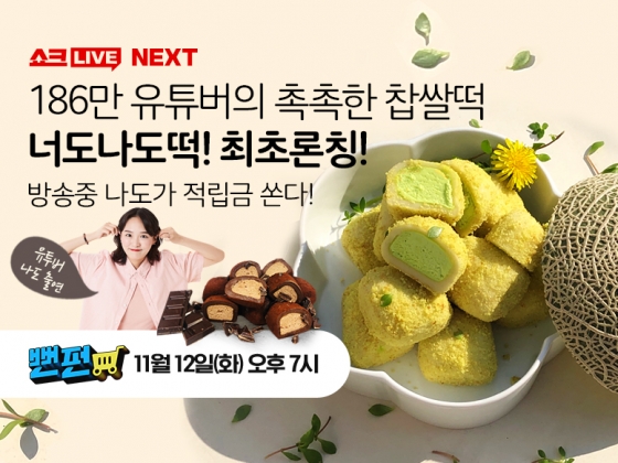 이날 오후 7시 쇼크라이브 '뻔펀'에서는 186만 유튜브 구독자를 보유한 크리에이터 '나도'가 출연해 오쇼핑부문과 공동개발한 찹쌀떡 '너도나도떡'을 론칭한다.