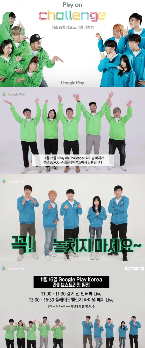 '플레이 온 챌린지' 파이널 매치는 16일 오후 1시부터 '국제게임전시회 지스타 2019' 구글플레이 부스에서 직접 확인할 수 있으며, 구글플레이 유튜브 채널에서 생중계된다.