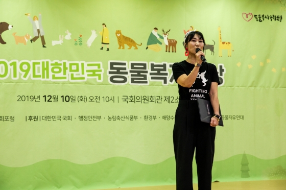 ‘2019 대한민국 동물복지 대상’은 국회 의원연구단체인 ‘동물복지국회포럼’에서 동물권 향상과 조화로운 공존에 기여한 개인과 단체를 발굴해 공로를 격려하고 올바른 동물복지 문화를 확산하기 위해 올해 처음 제정한 상이다.