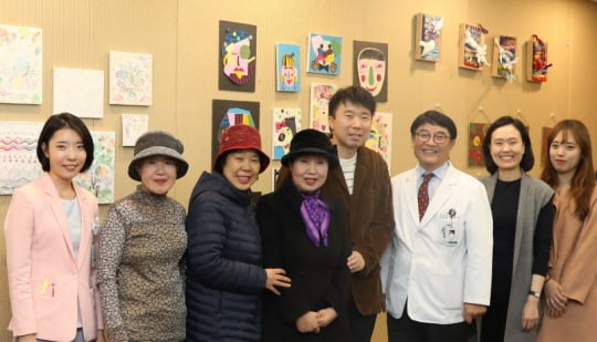 이번 전시회는 '지금 걷는 길 위에서 만나는 행복'을 주제로 지난 10월 14일부터 12월 9일까지 진행된 이대여성암병원 파워업 프로그램 중 하나인 미술치료 교실에서 완성된 미술품들로 꾸며졌다.