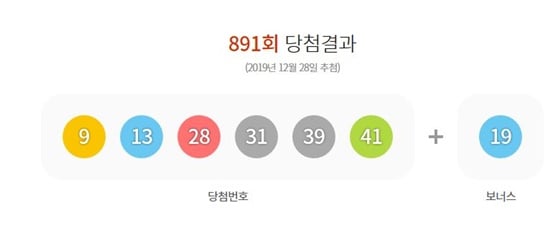 로또복권 운영사인 동행복권은 지난 28일 제 891회차 당첨 번호를 공개했다. 당첨번호는 9번, 13번, 28번, 31번, 39번, 41번이다. 2등 보너스 번호는 19번이다.