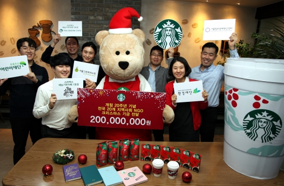 스타벅스커피 코리아가 지난해 20주년을 기념해 고객 참여로 조성한 크리스마스 시즌 기금 총 2억원을 전국 20곳의 지역사회 NGO 및 기관에 전달을 마쳤다고 6일 밝혔다.