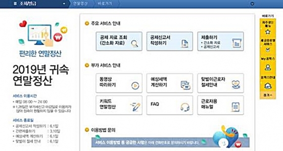 국세청은 이날 오전 8시부터 연말정산 간소화 서비스를 시작한다고 밝혔다. 근로소득이 있는 모든 근로자(일용근로자 제외)는 내년 2월분 급여를 받기 전까지 연말정산을 마쳐야 한다. 국세청 홈택스에 접속하면 2019년 연말정산을 위한 본인의 소득·세액공제 항목을 열람할 수 있다. 근로자는 공인인증서를 통해 로그인을 한 뒤, 부양가족 자료제공에 동의를 하면 된다.