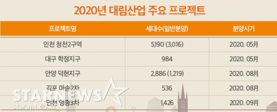 2019년 대림은 총 2661세대를 공급했다. 공급 물량기준으로 대우, 포스코건설 등과 함께 최상위권 실적이다. 특히 모든 일반 분양물량에 대한 계약을 완료했다.