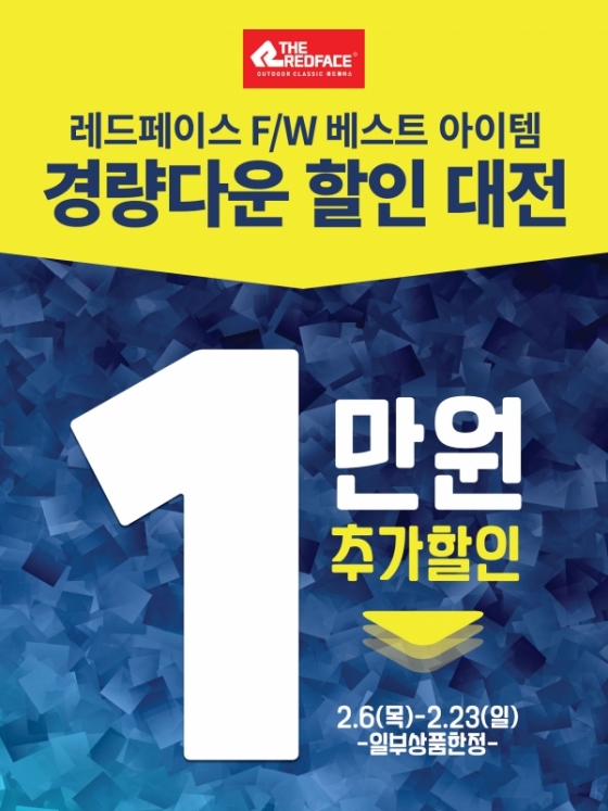 이번 프로모션은 레드페이스의 가을·겨울 시즌 베스트 셀러 아이템인 ‘경량다운’을 기존 할인된 금액에 1만원 추가 할인하는 행사다.