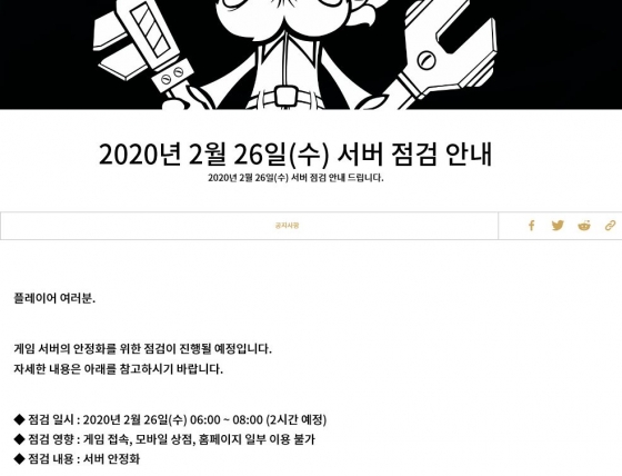 이번 점검은 오전 6시부터 오전 8시까지 2시간 동안 진행된다. 점검 동안 게임 접속, 모바일 상점, 일부 홈페이지 이용을 할 수 없다.