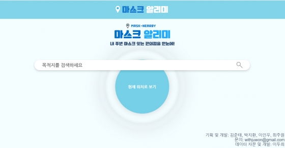 '마스크 알리미'는 위치 기반 서비스를 토대로 오프라인상에서 마스크를 판매하는 곳을 알려준다. 궁금한 지역을 검색하면 해당 지역을 중심으로 편의점에서 판매되는 마스크의 재고 현황을 알 수 있다.