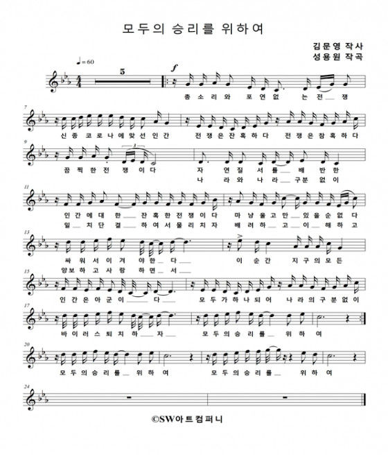 미디어피아와 SW아트컴퍼니는 '모두의 승리를 위하여(김문영 작사·성용원 작곡)'의 뮤직비디오를 유튜브를 통해 공개했다고 11일 밝혔다.