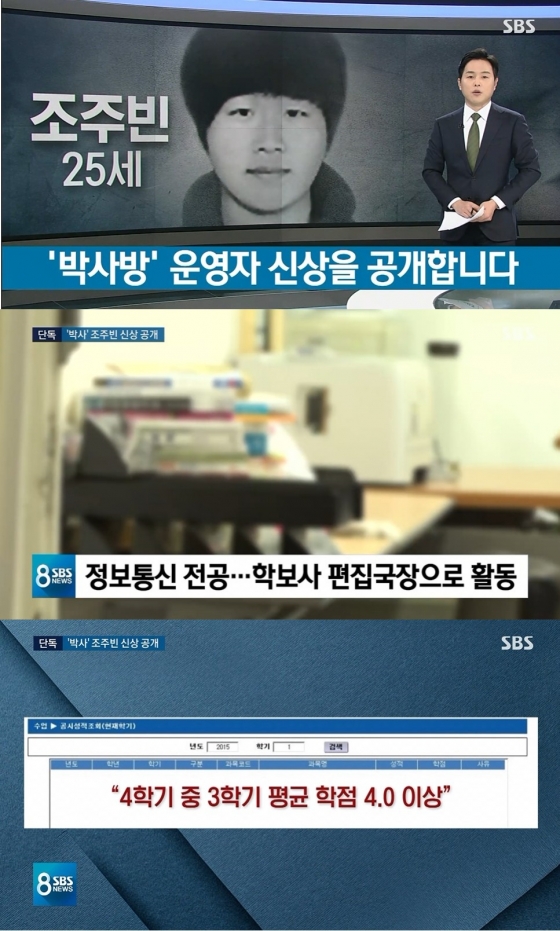 SBS 8 뉴스는 23일 국민의 알 권리를 위해 일명 '박사'라고 불리는 핵심 용의자 조주빈의 신원을 공개했다.