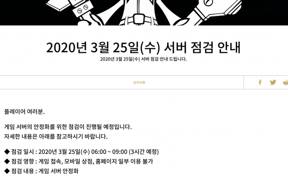 이번 점검은 오전 6시부터 오전 9시까지 3시간 동안 진행된다. 점검 동안 게임 접속, 모바일 상점, 일부 홈페이지 이용이 제한된다.