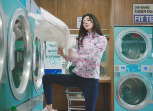네파가 모델 전지현이 셀프 빨래방에서 본능적으로 리듬을 타는 그녀의 색다른 모습으로 광고를 준비했다.