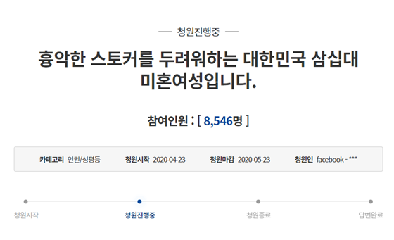 마지막으로 조씨는 "이런 일이 빈번히 일어나는 것은 현행 스토커처벌법이 매우 경미하기 때문"이라며 "국회 차원에서 스토커처벌법을 피해자들이 공감할 수 있는 강력범죄로 다뤄주길 바란다"고 전했다.