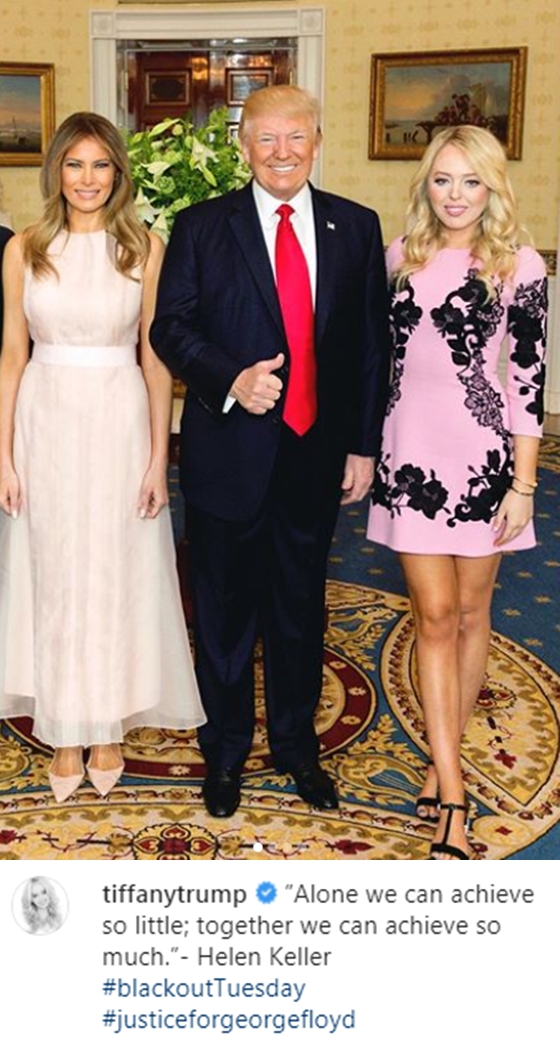 도널드 트럼프 미국 대통령의 딸 티파니 트럼프가 '블랙아웃화요일(#blackouttuesday)' 캠페인에 동참했다.