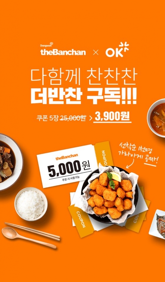 동원홈푸드가 운영하는 국내 최대 신선 가정간편식(HMR) 온라인몰 ‘더반찬’이 OK캐시백과 협업해 각종 할인쿠폰을 정기 제공하는 구독 서비스 ‘다함께 찬찬찬’을 론칭했다고 1일 밝혔다.