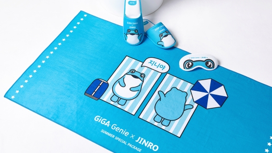 기가지니X진로 썸머 스페셜 패키지는 기가지니2의 탈착식 스피커 망에 진로의 푸른 두꺼비가 그려져 있다.. 이 외에도 기가지니와 두꺼비 캐릭터가 그려진 ‘지니 이즈 백’ 배스타월, 슬리퍼, 수면안대, 소주잔, 두꺼비 피규어, 스마트폰 스트랩 등 7종을 선보인다. 시원한 여름을 위한 인테리어 소품으로 여름철 썸머족을 겨냥했다.
