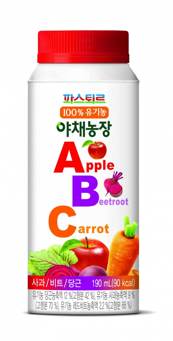 파스퇴르 100% 유기농 야채농장은 유기농 원료로 만든 프리미엄 건강주스다. 이번에 ABC주스가 추가되면서 기존 100% 야채농장 유기농 과일·야채와 함께 전체 2종을 운영하게 됐다.
