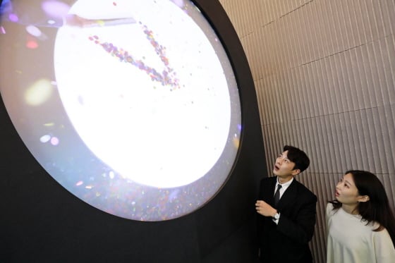 이번 신작은 ‘컨페티 클락(Confetti Clock)’이다. 영상에서는 종이 꽃가루가 화려하게 날리는 장면이 연출되고, 한 남성이 바닥에 떨어진 종이 꽃가루를 시계방향으로 끊임없이 쓸어내는 행위 예술로 시간을 말해준다.