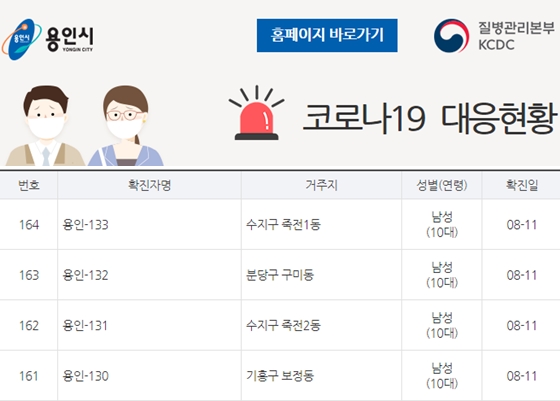 용인시청, 130~133번 확진자 발생 알림 "대지고·죽전고 학생"