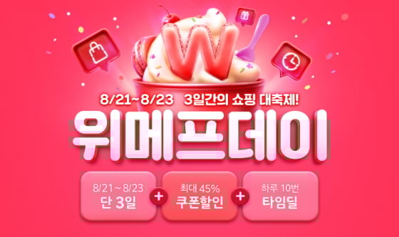 위메프가 3일간 모든 고객에게 최대 45% 할인 쿠폰을 지급한다.