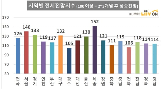 KB부동산 리브온이 발표한 월간 KB주택시장동향 자료에 따르면 수도권(1.09%)은 전월 대비 상승폭이 줄었지만 상승을 이어갔다. 5개 광역시(0.41%)도 전월과 유사한 상승률을 보였다. 기타지방(0.37%)은 세종(6.44%)이 매우 높게 상승했고, 수도권에서는 경기(0.93%)가 상승했으며 인천(0.44%)도 상승을 보였다. 서울(1.50%)은 지난달(1.45%) 보다 상승폭이 컸다.