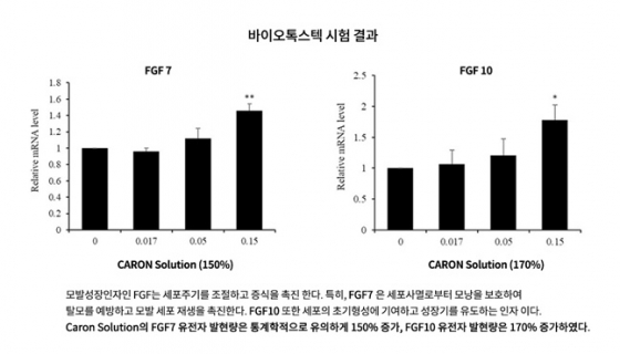 카론바이오 주식회사(대표 조진형)는 1일 미국 FDA(식품의약국) 승인 기관인 ‘바이오톡스텍(Biotoxtech)'에서 시행한 ‘카론 샴푸와 헤어토닉의 유효성분에 대한 탈모 예방 및 발모 효능’에 대한 시험 결과를 발표했다.