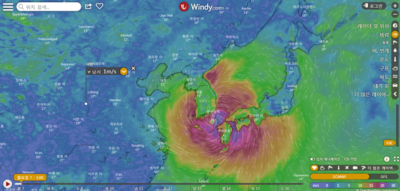 7일 오전 5시 10호 태풍 하이선 경로 /사진=윈디닷컴