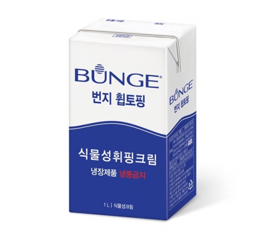 롯데푸드는 글로벌 식물성 휘핑크림 선도기업 번기(BUNGE)와 기술 제휴를 통해 인기 휘핑크림 제품 ‘번지 휩토핑’을 국내에서 생산 및 출시했다고 16일 밝혔다.