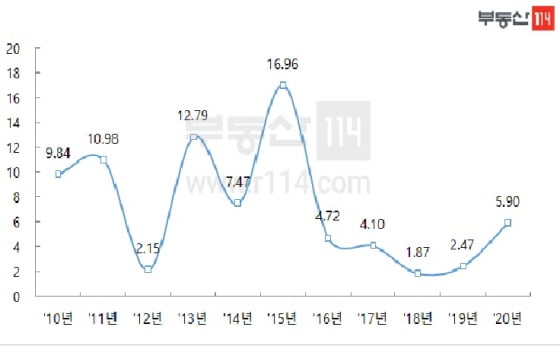 부동산114에 따르면 올해 서울 아파트 전세가격이 5.90% 올라 2015년 이후 5년 만에 가장 높은 상승률을 기록했다. 전세 매물 부족으로 계절적 비수기 없이 꾸준히 상승한 결과로 풀이되고 있다.