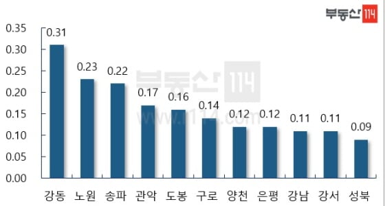 이번 상승은 저가 아파트가 많은 노원, 관악 등이 주도했다. 강남권을 중심으로는 상승폭이 줄어드는 분위기다, 경기ㆍ인천이 0.09% 상승했고 신도시는 0.08% 상승을 기록했다.